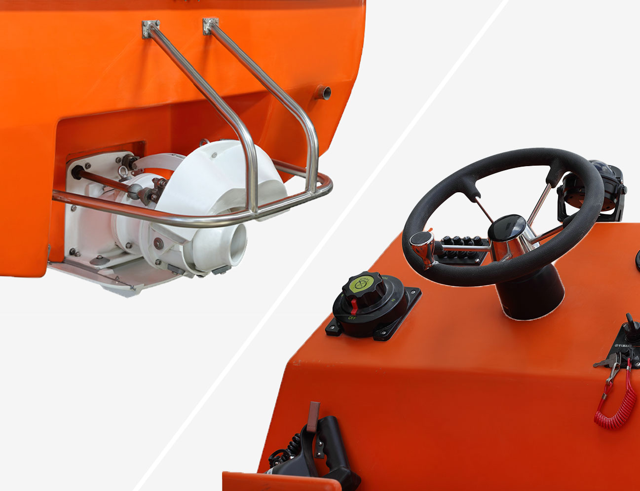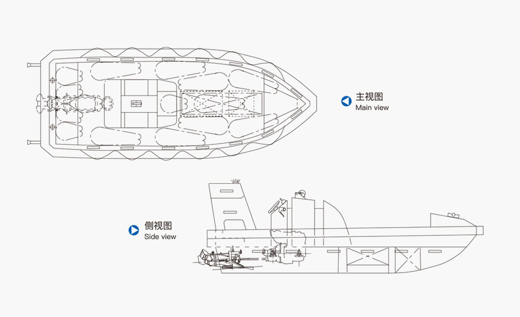 本艇的設(shè)計、制造和試驗完全符合經(jīng)MSC.226(82)、MSC.274(85)、MSC.321(89)和MSC.323(89)修正的MSC.81(70)《經(jīng)修正的就生設(shè)備試驗建議》第1部分;1974年國際海上人命安全公約及其修正案第Ⅲ章第21、31、34條;經(jīng)MSC.218(82)、MSC.272(85)、MSC.320(89)修正的MSC.48(66)《國際救生設(shè)備規(guī)則》第Ⅴ章的要求; 艇體為阻燃型玻璃鋼;供人員行走的表面均為防滑面;內(nèi)殼與外殼的聚氨酯泡沫給救助艇提供足夠的浮力。如果在水線下面的船體有損壞,浮體仍可提供足夠的浮力使艇在安全水平面上漂浮。救助艇兩側(cè)設(shè)有鋼性扶手以便乘員上下,自滔式甲板確保進(jìn)入艇內(nèi)的海水快速排放;艇上裝有手搖泵,用于排除艇內(nèi)積水;艇上裝有不銹鋼吊鉤系統(tǒng),采用吊艇索下放或回收;救助艇配備自扶正空氣箱,滿足客貨滾裝輪的使用要求;本艇可滿載全速航行大于4小時,在有3人乘員情況下航速可達(dá)到20節(jié)以上,在滿載情況下航速可達(dá)到8節(jié)以上。