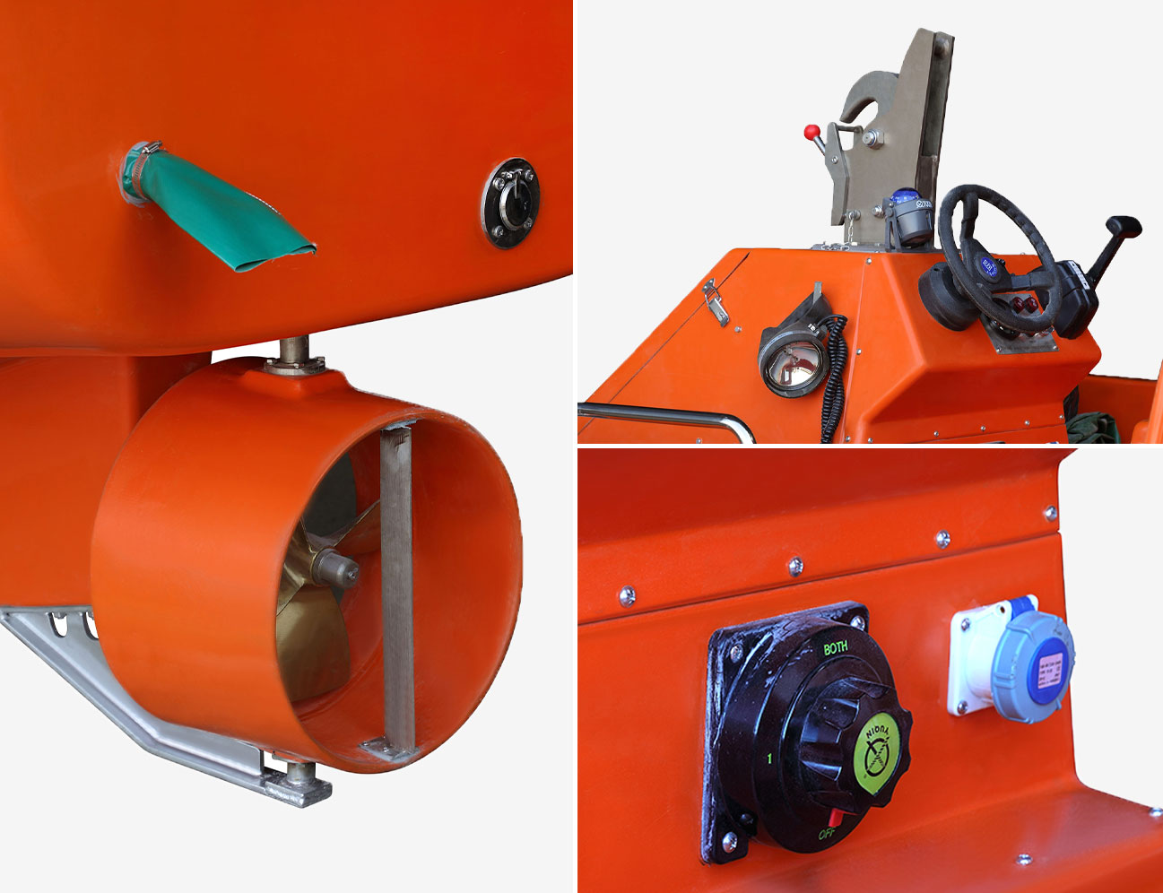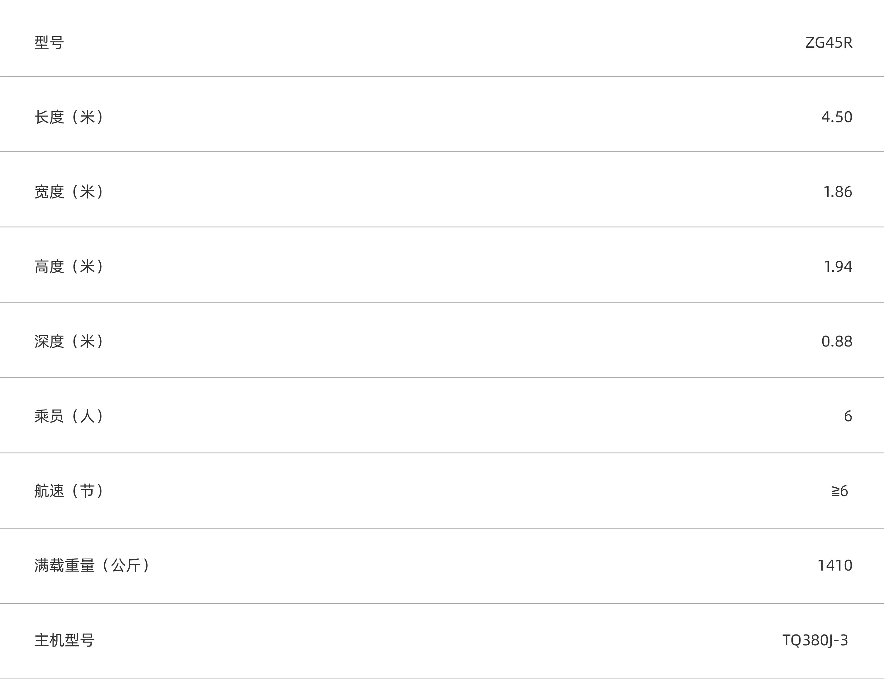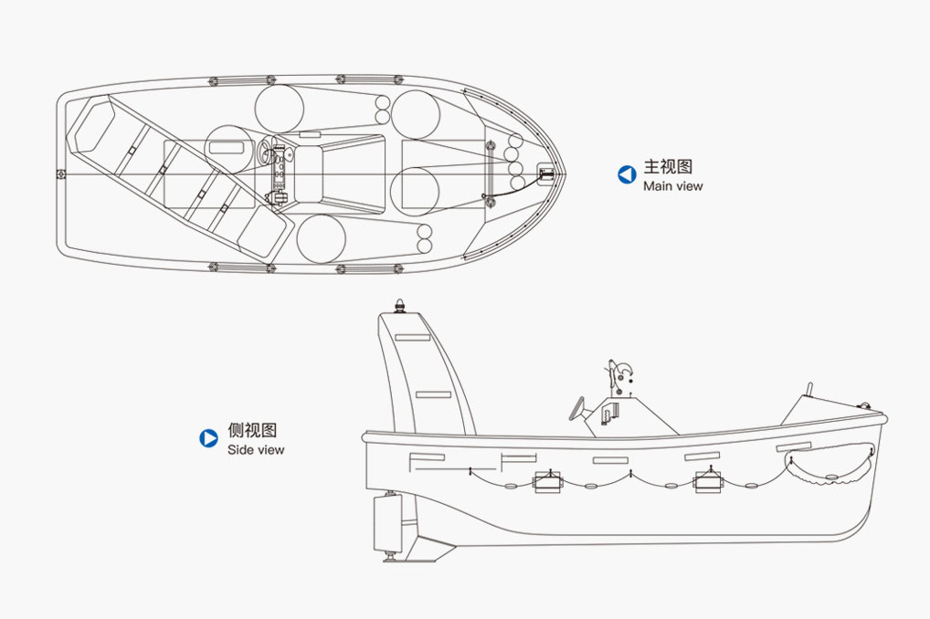 本艇的設計、制造和試驗完全符合MSC.226(82)、MSC.274(85)、MSC.321(89)和MSC.323(89)修正的MSC.81(70)《經(jīng)修正的就生設備試驗建議》第1部分;1974年國際海上人命安全公約及其修正案第Ⅲ章第21、31、34條;經(jīng)MSC.218(82)、MSC.272(85)、MSC.320(89)修正的MSC.48(66)《國際救生設備規(guī)則》第Ⅴ章的要求; 艇體為阻燃型玻璃鋼;供人員行走的表面均為防滑面;內殼與外殼的聚氨酯泡沫給救助艇提供足夠的浮力。如果在水線下面的船體有損壞,浮體仍可提供足夠的浮力使艇在安全水平面上漂浮。救助艇兩側設有鋼性扶手以便乘員上下,自滔式甲板確保進入艇內的海水快速排放;艇上裝有手搖泵,用于排除艇內積水;艇上裝有不銹鋼吊鉤系統(tǒng),采用吊艇索下放或回收;救助艇配備自扶正空氣箱,滿足客貨滾裝輪的使用要求;本艇可滿載全速航行大于4小時,航速可達到6節(jié)以上。