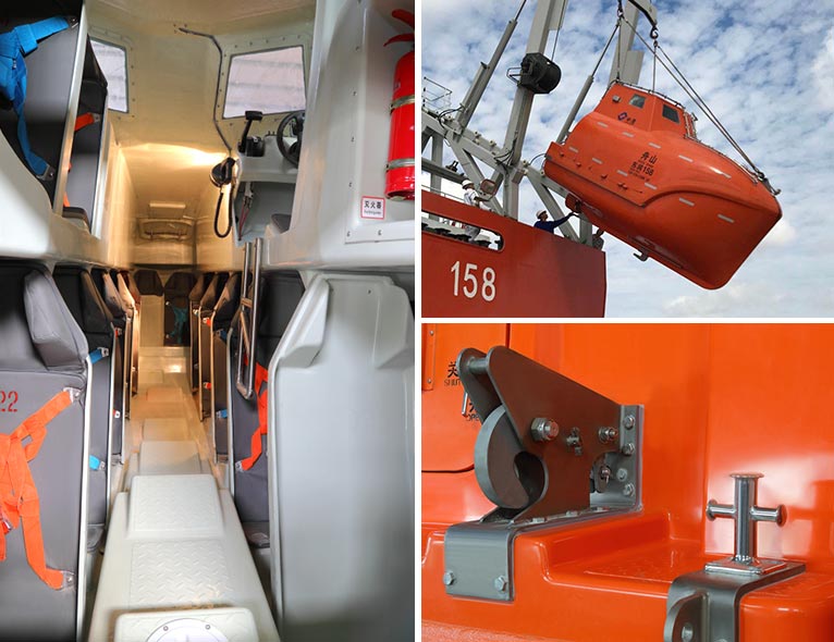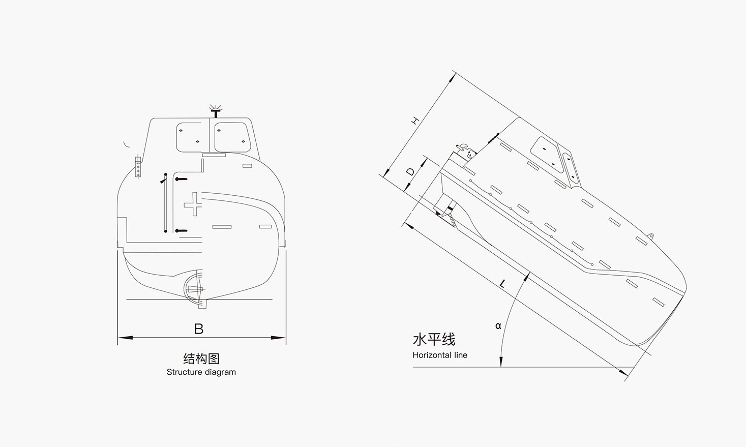本艇的設(shè)計(jì)、制造和試驗(yàn)完全符合經(jīng)MSC.226(82)、MSC.274(85)和MSC.323(89)修正的MSC.81(70)《經(jīng)修正的就生設(shè)備試驗(yàn)建議》第1部分;1974年國際海上人命安全公約及其修正案第Ⅲ章第21、31、34條;經(jīng)MSC.218(82)、MSC.272(85)修正的MSC.48(66)《國際救生設(shè)備規(guī)則》第Ⅳ章的要求;具備救生、救助兼用功能,適合在較惡劣海況下使用,如遠(yuǎn)洋客貨輪及油輪等,同時也適用于石油鉆井平臺、軍艦平臺等。 艇體為具有高耐燃特性的阻燃型玻璃鋼;供人員行走的表面均為防滑面;艇內(nèi)裝有可排除艇內(nèi)積水手搖泵;本艇通過滑道自由降落下放,并采用吊艇索回收,自由釋放系統(tǒng)裝置是經(jīng)過特殊設(shè)計(jì)的,操作方便、安全可靠;本艇可滿載全速航行大于24小時,航速可達(dá)到6節(jié)。 本艇有普通型和耐火型兩種規(guī)格,其中耐火型救生艇裝有灑水系統(tǒng),由主機(jī)水泵帶動從艇最低處抽取海水,確保沒有易燃液體進(jìn)入系統(tǒng),灑水系統(tǒng)能提供足夠的水,噴灑于艇的表面;耐火型救生艇裝有供氣系統(tǒng),可提供足夠的的空氣滿足全體乘員和柴油機(jī)全速運(yùn)轉(zhuǎn)至少8分鐘,能在艇內(nèi)形成一個超壓狀態(tài)以阻止有毒有害氣體的進(jìn)入。